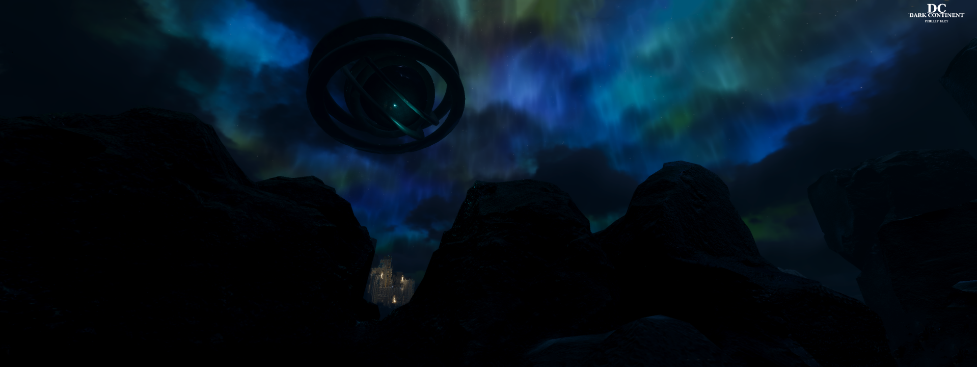 Das Plateau ist der Einstiegspunkt. Weite Sicht, markante Felslinien und die Sphäre am Himmel setzen die Fernorientierung. Hier justiere ich Licht, Nebel und Wetterparameter und verzweige die ersten Pfade Richtung Innen- und Außenbereiche.