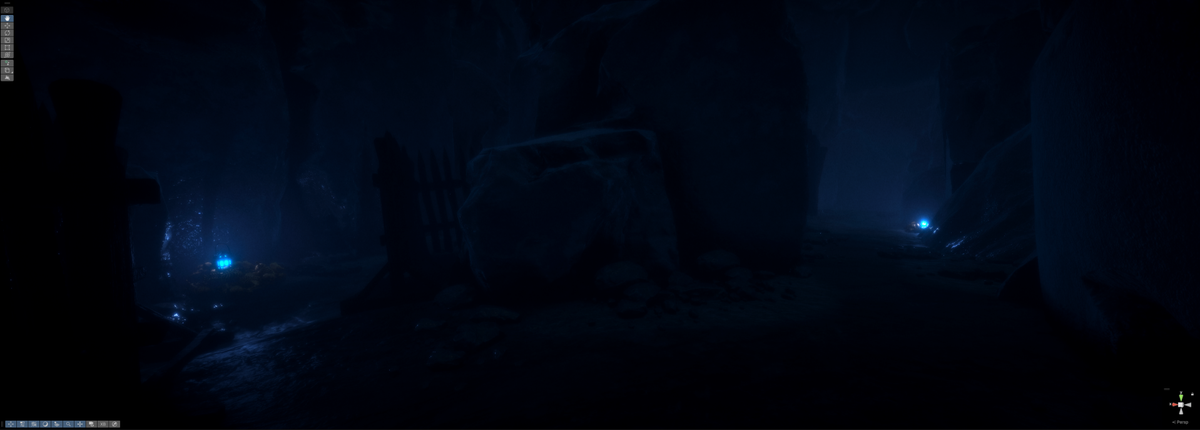Licht und Farbtemperatur unterscheiden sich bewusst: warm in der Krypta, kühl im Außenbereich. Volumetrischer Nebel, einfache Partikel und angepasste Materialien (Unity 6, HDRP) stützen die Lesbarkeit bei moderaten Distanzen. Die aktuellen Screens zeigen: Kartenübersicht, Krypta-Eingang, Hauptgang, Gräberfeld und das Startplateau.